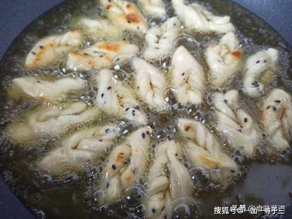 10、完美出锅,这样炸的麻花,奶香味十足,可以再撒点白芝麻,口感微甜,比买的还好吃,没有任何添加剂,营养美味,吃着更放心。