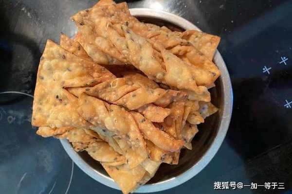 9、薄脆制作完毕,可以直接食用,也可以搭配煎饼果子来吃,捏碎了还能拌进饺子馅中,色泽金黄,酥脆可口还不油腻,放久了也不会软。
