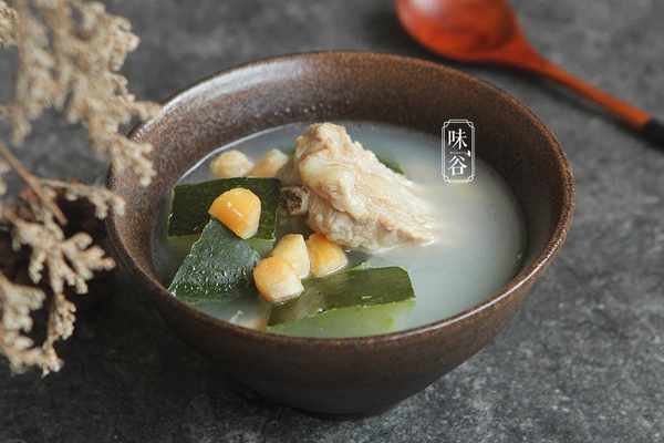 【准备食材】:冬瓜 适量、干贝 适量、排骨(或猪骨) 适量、姜 2片、盐 适量