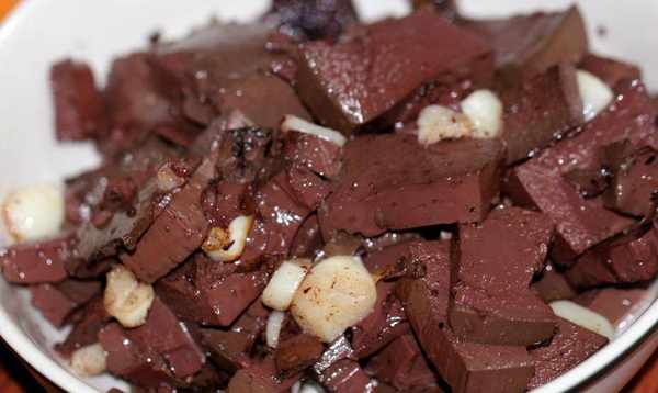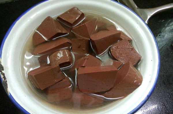(1)买回新鲜猪血洗净切块;