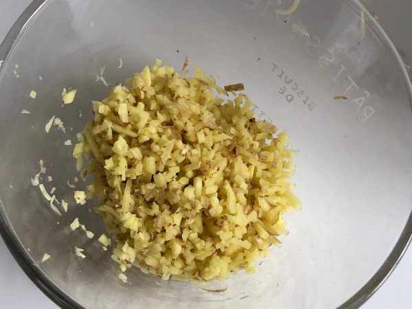 6、用纱布把切好的姜末包进去,然后用手挤,