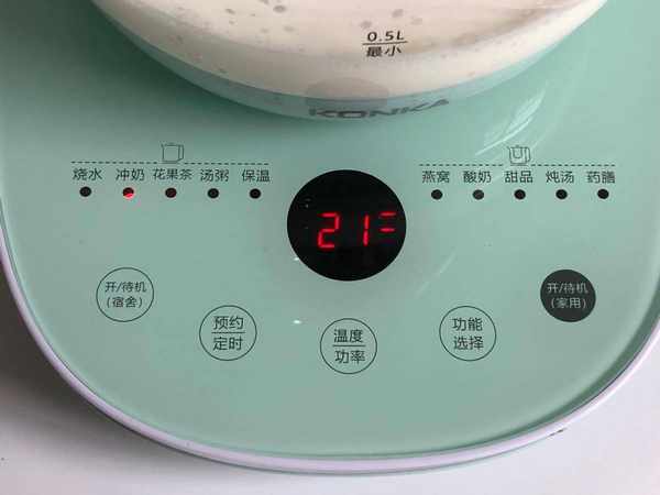 用养生壶做可以看到牛奶的温度正在一点一点的往上升,这也是能够提高成功率的一个步骤。
