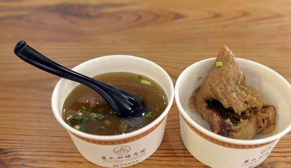 板栗肉粽也是極具人氣的,裡面的資料非常豐富,特別是粽子熱的時候吃口感很好,裡面有很大塊的肉,糖芋苗是用芋頭熬制的,煮的也很軟了,入口即化,喝到嘴裡甜甜的,黏黏的,口感很好。