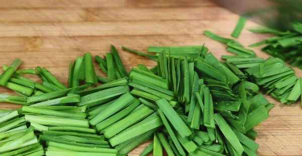1.切韭菜的时候,先把根部的一段给切掉不要,在把剩下的给切成韭菜段。