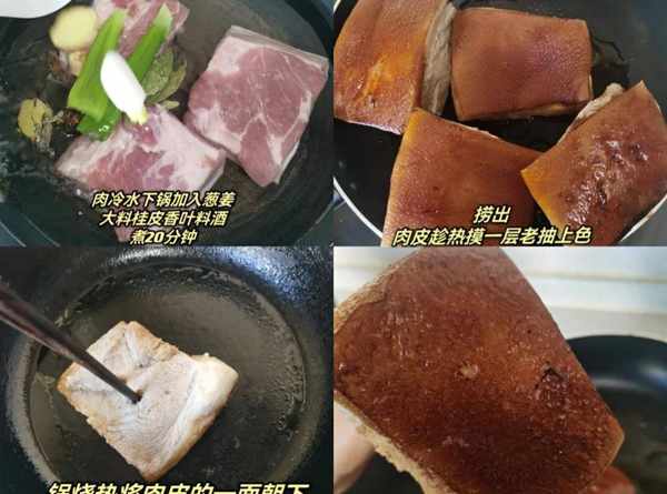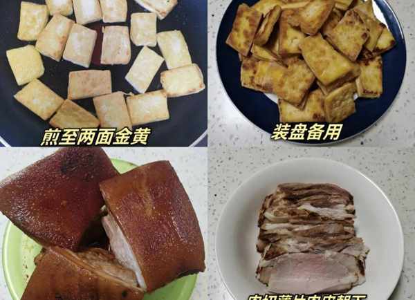食材:厚一点的五花肉,豆豉,豆腐,葱姜香叶桂皮,生抽,老抽,蚝油,盐,味精,清水。
