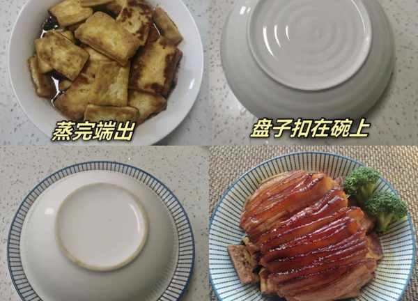做法:可以看上面步骤图,就是煮肉的时间20-30分钟都行大家可以用筷子在肉上扎一扎能扎透就行了。还有蒸肉的时间40-60分钟,蒸的时间越长肉越好吃,我一般先蒸40分钟,等吃的时候再蒸40分钟,那样更好吃。