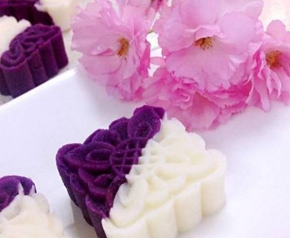 这个是颜值最高的紫薯山药糕,准备好紫薯、山药、绵白糖、食用油等食材,然后把紫薯和山药洗干净去皮切块分别蒸熟,把蒸好的紫薯和山药分别放进保鲜膜用擀面杖压成你,在分别加入绵白糖搅拌均匀,接下来月饼模具抹上一层薄薄的食用油,紫薯泥一边山药泥一边分别按实后就可以拿出来食用了。