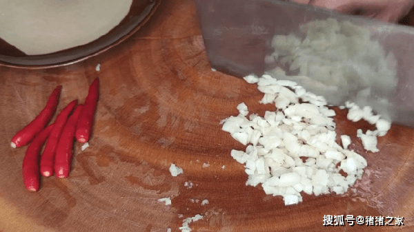 2.大蒜拍一下剁成蒜末;小米椒切小圈,不喜欢吃辣的也可以不放;小葱切葱花。