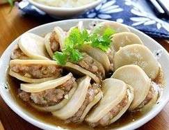 杏鲍菇一根,猪肉馅,葱姜末,蚝油,酱油,水淀粉,五香粉