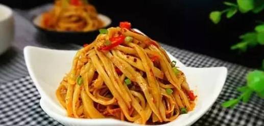 4蒸熟的杏鲍菇稍微冷却一下,顺着纹理撕成均匀的小条,撕好后用手挤干水分