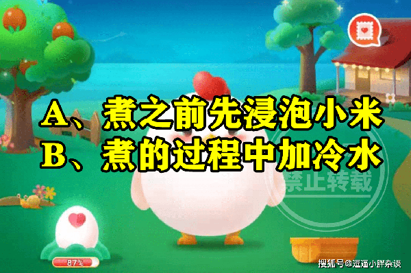 蚂蚁庄园:古语云:“春时宜食粥”,想要熬出黏稠的小米粥,可以?是煮的过程中加冷水还是煮之前先浸泡小米呢?这是蚂蚁庄园的题目,关于古语云:“春时宜食粥”,想要熬出黏稠的小米粥,可以?的答案,选项中有两个选择。