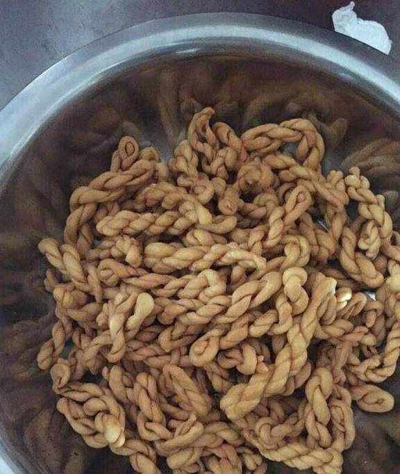 这是我们家过节必做的一种小吃,它是用糯米粉炸成的,刚炸好会有些受热膨胀,但吃在嘴里非常香脆,等到它到冷却后还会慢慢变小,那时候口感又会不一样,不知道你们吃过这种小吃吗?