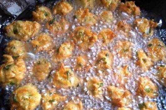 炸丸子是用瘦肉、鸡蛋、葱花和面粉做成的,炸起来非常的香,每年过年的时候母亲都会做。