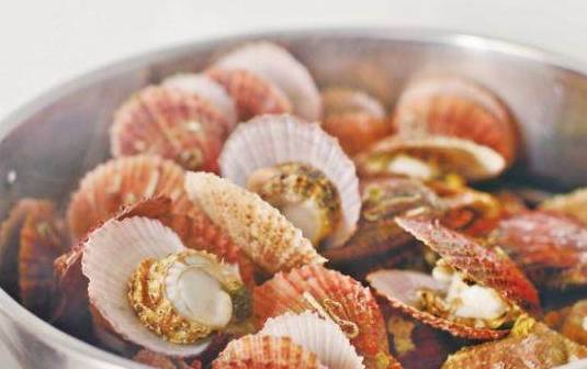 1扇贝清洗干净外壳。