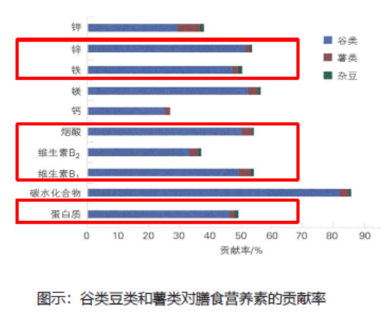 谷类食物也是膳食蛋白质的重要来源,尤其全谷物和粗杂粮能提供丰富的维生素B1、维生素B2、烟酸、锌、铁等营养素,全谷物还是膳食纤维的重要来源,调节肠道菌群,为提高免疫力保驾护航。