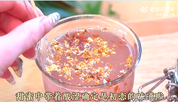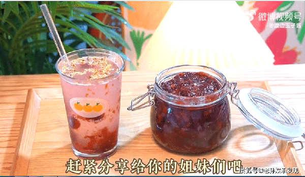 笔者在写此稿时,这条微博视频排在榜上的第二位。博主“渡边玉子酱”写道: 你浅浅的微笑就像乌梅子酱,作为美食博主咱们直接给它做出来,冲水喝或者加点气泡水酸酸甜甜的很好喝,像是初恋的味道……