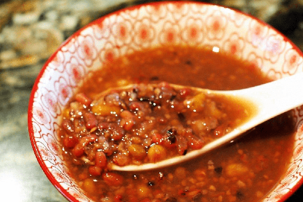 准备食材:赤小豆50克,绿豆25克,红豆25克,黑糯米100克,薏米25克,小米25克,燕麦25克,荞麦25克,藜麦25克,花生100克(加入核桃也可以)将所有食材清洗干净之后。倒入锅中加入清水2000克,中小火慢慢炖煮45分钟,之后盛出温度适宜的时候,就可以食用了,这款粥里,赤小豆可以补气血,绿豆可以清热,红豆可以补血,黑糯米补肾,薏米除湿健脾,小米补脾胃,荞麦藜麦可以降三高,花生能够养胃,这么多好的有营养的谷物,一起炖煮,最终才会成就一碗“祛湿健脾养胃粥”。