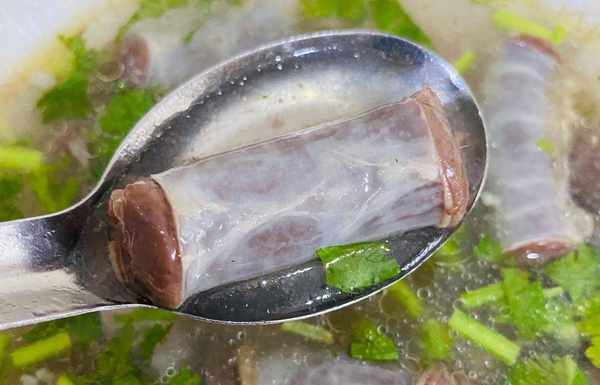 但也有不少人就好这一口,不少吃过的人这样描述羊肠子:“第一次吃羊肠子是闭着眼吃的,因为怕有腥味;而第二次吃是眯着眼睛吃下去,为的就是品味;这第三次吃就是瞪着眼睛吃了,因为前两次吃被它的美味所深深地吸引,这次吃为的就是解馋”,其实这么说一点都不夸张,德州羊肠子入口爽滑,香而不腻,不腥不膻,越吃越想吃。特别是在冬天的时候,来上一碗热气腾腾的羊肠子,真的是暖胃又暖身,这就是潜藏在德州街头巷尾的美食——羊肠子。
