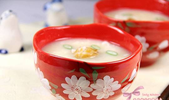 小贴士;煮粥的时候先烧开水,再下入米,这样不易粘锅。骨汤一定要过滤,去掉骨渣。