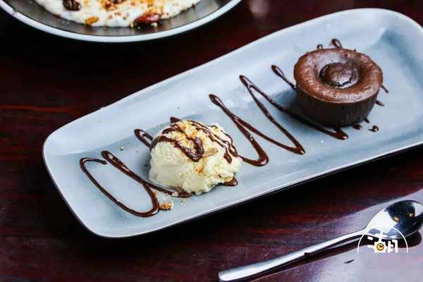 巧克力熔岩蛋糕配香草冰淇淋