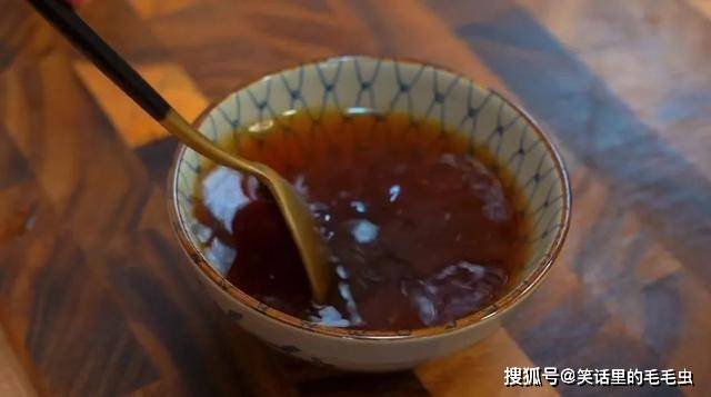5.下面调一个料汁,碗中依次放生抽、料酒、蚝油、黑胡椒粉、白糖、清水,搅拌均匀。