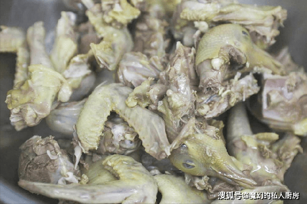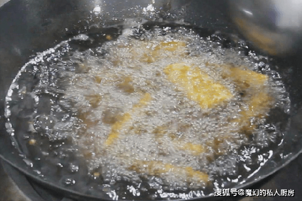 然后把油温升高至6成热,下入鳝鱼段,快速炸10秒钟立马倒出来,经过滑油的鳝鱼外皮筋、肉质嫩,口感非常好。