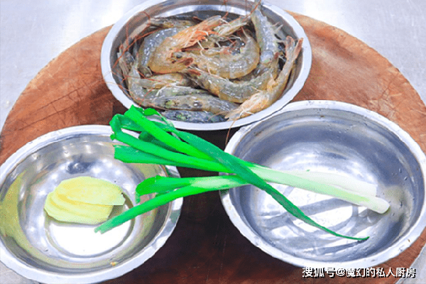 准备适量的葱段、姜片和500克鲜虾,把虾洗干净、掰断虾头,挤出里面的内脏,顺便把虾线拎出来,这样处理又快又干净,还不破坏虾的完整性。