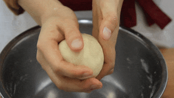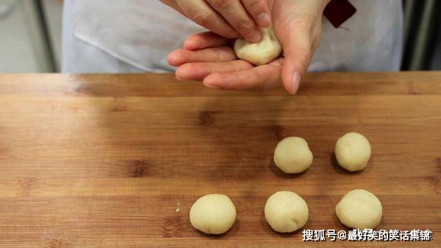 20分钟后取出油皮,把面团先搓成长剂子,再切成大小均等的面剂子。之后把面剂子放在手心里面团一下,把它搓揉光滑。全部团好以后,用保鲜膜盖好再次松弛10分钟。记住这一步千万不能省略,否则面团就会没有筋性。