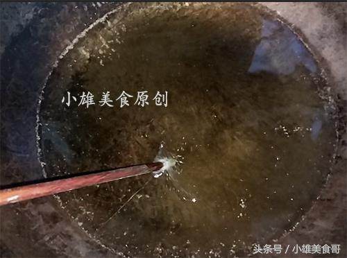 4、锅烧干,往里面加入食用油,油烧到起泡,然后放入1根筷子,试一下油温,筷子放里面开始冒泡,就可以放入酥肉炸了。