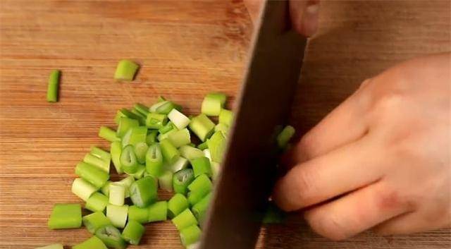 5.蒸的时候,我们来切一些葱花,准备一些大蒜剁成蒜末,一些小米椒切成圈。