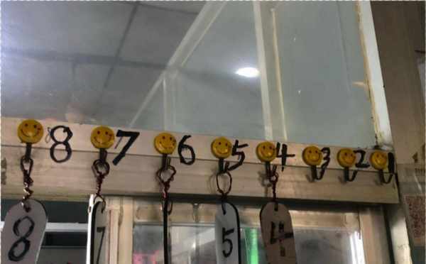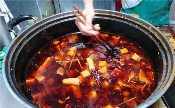 他们家的招牌很醒目,比旁边的招牌大一倍,这是一条美食街,全是美食店,卖串儿的也不少,他们家的环境很简陋,也没啥服务,店里就夫妻二人,墙上挂着号码牌,需要的话自己取号排队,如此自助服务也很少见,店里最吸引人的就是那口大锅,里面香喷喷的红油里煮着各种串儿,这个红油和四川火锅那种红油不一样,有点像东北地区的老式麻辣烫的味道,口感主要偏重咸香,没有想象中那么辣,比较鲜香的汁水如果口味重还可以喝几口,估计汤底里吊了鸭骨头或者鸡骨头,才会这么鲜美。