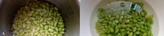 毛豆清洗干净,入开水中烫煮至熟。过一下凉水,沥干水分备用。