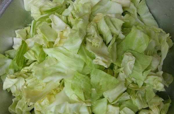 倒入卷心菜翻炒,快熟的时候调味并下蒜碎翻炒,后一匙水淀粉勾兌下即可