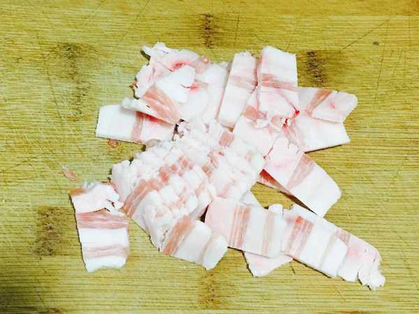 葱、蒜剥去外皮清洗干净,分别切成葱花、蒜片,五花肉一块用温水冲洗干净,切成厚薄均匀的五花肉片