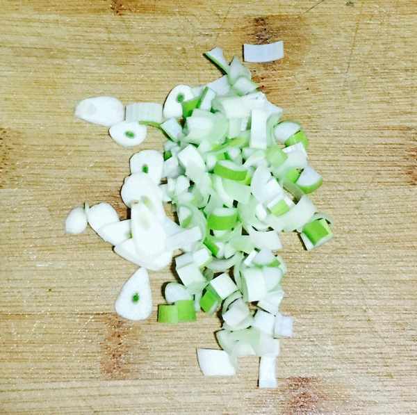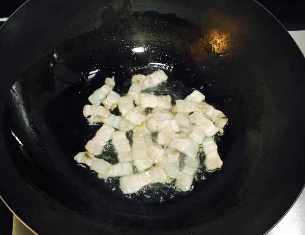 热锅加入适量的花生油把五花肉片炒出香味并且出油,放入葱花、蒜片爆香,料酒烹锅