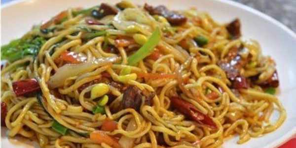 牛肉炒拉面:1、重新起锅,将锅内的食用油烧热后,放入煮熟的拉面(需注意,拉面熟后用马勺炒一段,可用筷子翻炒)。
