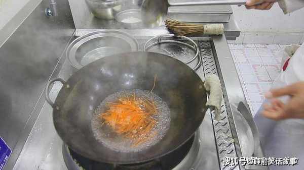 焯水30秒后,捞出后快速用清水冲洗,海带丝焯水能减少海带的腥味,清水冲洗胡萝卜丝吃起来口感会更脆。