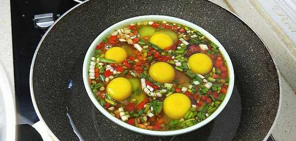 7、6个鸡蛋均匀的打入盘中(不用搅拌)