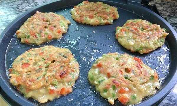 (5)、面糊准备好以后,还需要准备一个电饼锅,将电饼锅预热以后,刷上一小层的食用油,并将油温加热。等油温热后,把准备好的面糊,用汤勺一勺勺的舀入到电饼锅当中,摊成饼状。
