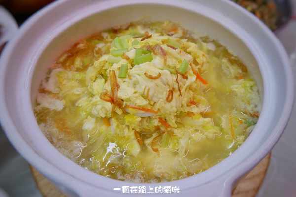 带汤的菜,汤也可以喝,白菜里面还加了鸡蛋和肉,三样荤素搭配,清新爽口又不腻。