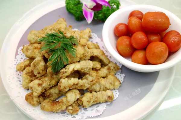 闽南炸醋肉,大人小孩都爱吃的炸醋肉,当然也是必点,外酥里嫩,还搭配了小番茄解腻,想得蛮周到的。