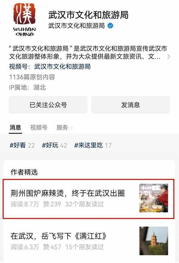 武汉市文化和旅游局推荐了
