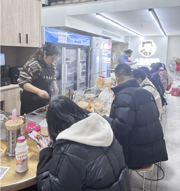 此起彼伏的点餐声,老板忙碌着却也乐呵:“来来来,豆棍,谁要的,碗拿来。”