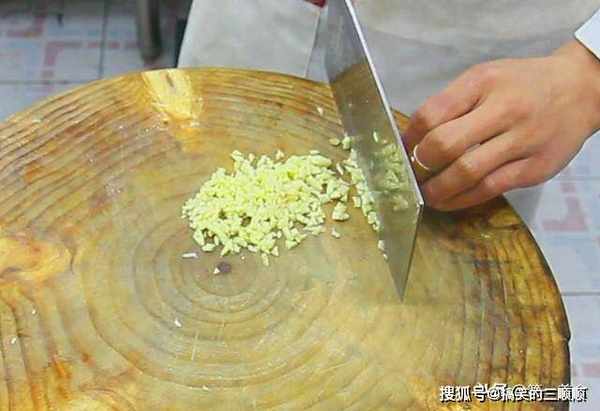 大蒜要多一点,拍扁后,剁成碎沫,蒜末出味。