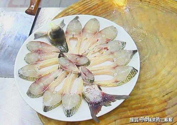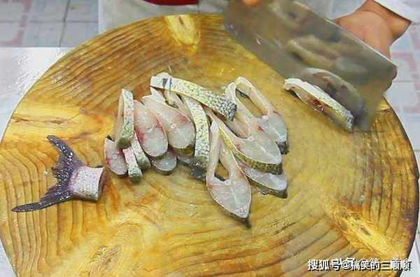 先把鱼尾处斩下来,然后从尾部下刀,斩成小块。