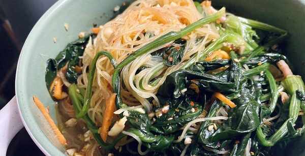 配料:菠菜、粉丝、生抽、香醋、蚝油、盐、鸡精、辣小米。