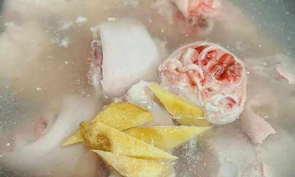 1、猪蹄洗净斩小块,冷水下锅,放几片生姜,煮开后,撇去浮沫,将猪蹄捞出来洗净;