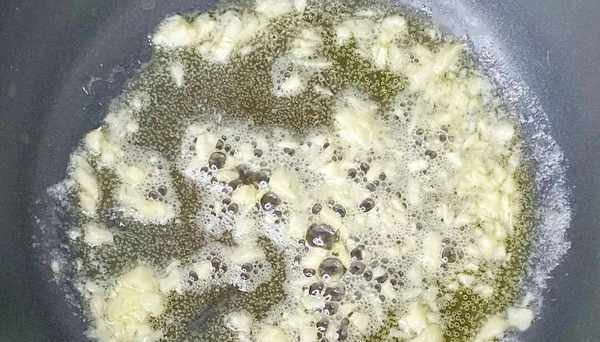 3、来几头大蒜,剁成蒜末,然后热锅加油,倒入蒜末,炒出香味后,关火;