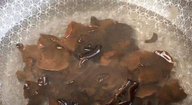 3、锅里的水烧开后,将提前泡好的香菇放入锅中焯水2分钟后捞出。