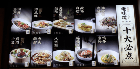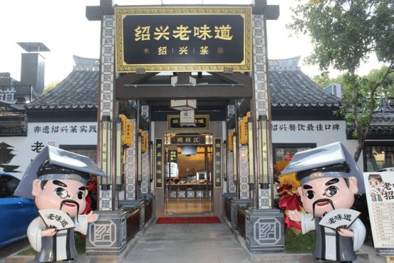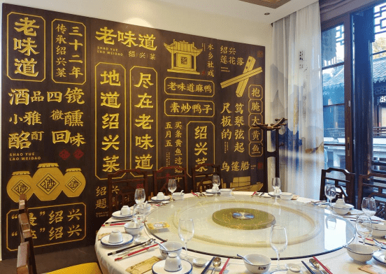 A:今年5月31日老味道停业装修,10月21日重新开业,在我这家店升级装修之前,我都是不太去外面吃饭的,因为我一直坚持不放鸡精味精,外面菜品的口感会不太习惯,包括他们的经营思路和我的也不一样。但这次升级装修的过程中,我也有去别的餐馆就餐,同时学习他们是如何经营的,看到他们的装修、店内一些绍兴特色的展示,以前我不理解,但观念转化后,我就看懂了他们的思路。这不仅是在赚取收益,更是在传播绍兴菜与绍兴文化,让我一个本地人看了都想拍照打卡。我开始针对自己的店铺进行思考,我的店铺靠环城河,外面小桥流水,内部经过精心装修后,相比之前提高了不少档次,我还采购了一艘乌篷船放在湖面上,体现绍兴特色,对于包厢的名称也进行了改变,会稽山、女儿红、状元红;迎恩门、都泗门、昌安门;鉴湖厅、青藤居、沈园阁等体现绍兴特色的名称,酒楼形象方面,设计了两个“越师爷”的卡通人物放在店门口,表示绍兴的师爷文化,希望对客人来说,我这里不仅仅是一家可以吃饭的酒楼,也是一处体现绍兴特色可以来打卡的地方。环境升级的同时,菜品也进行了装盘、用料升级,希望把老味道做成绍兴菜中的品牌店,让来的顾客都能满意。